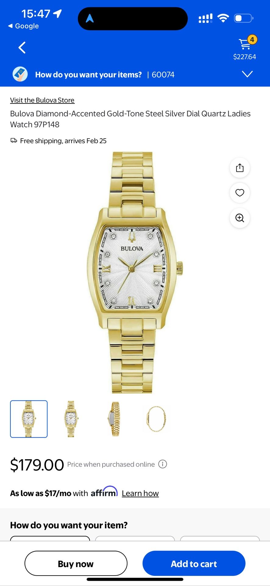 Bulova Diamond-Accented Gold-Tone Steel Silver Dial Quartz Ladies Watch 97P148