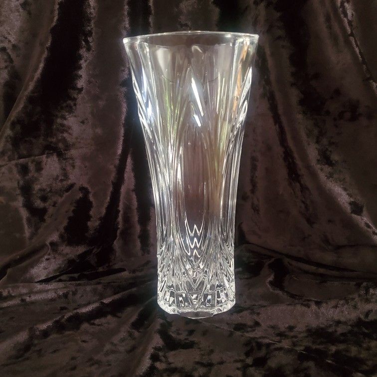 - Beautiful lead crystal vase made in France by Cristal d'Arques - Excellent vintage condition with no scratches, no chips - Measures approximately 9.5" tall and 4.25" wide at top and 3" wide at base