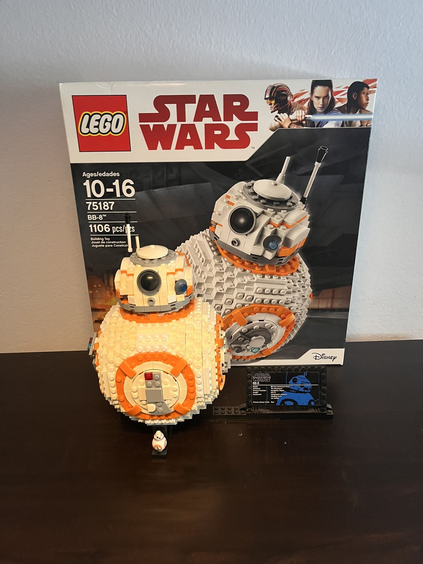 Prebuilt Lego Star Wars BB8 set. Yellowed parts on upper side of set. Original box and instructions included. Pickup in San Dimas