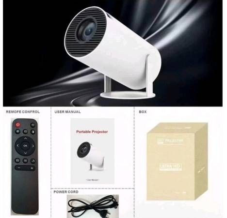 Mini Projector, Support 4K 1080P Portable Video Projector with Dual-Band WiFi6 and 5.2 Bluetooth Android 11, 200 ANSI Lumens outdoor , 180° Rotatable, Auto Keystone Correction, For outdoor, bedroom open box new selling for only $30