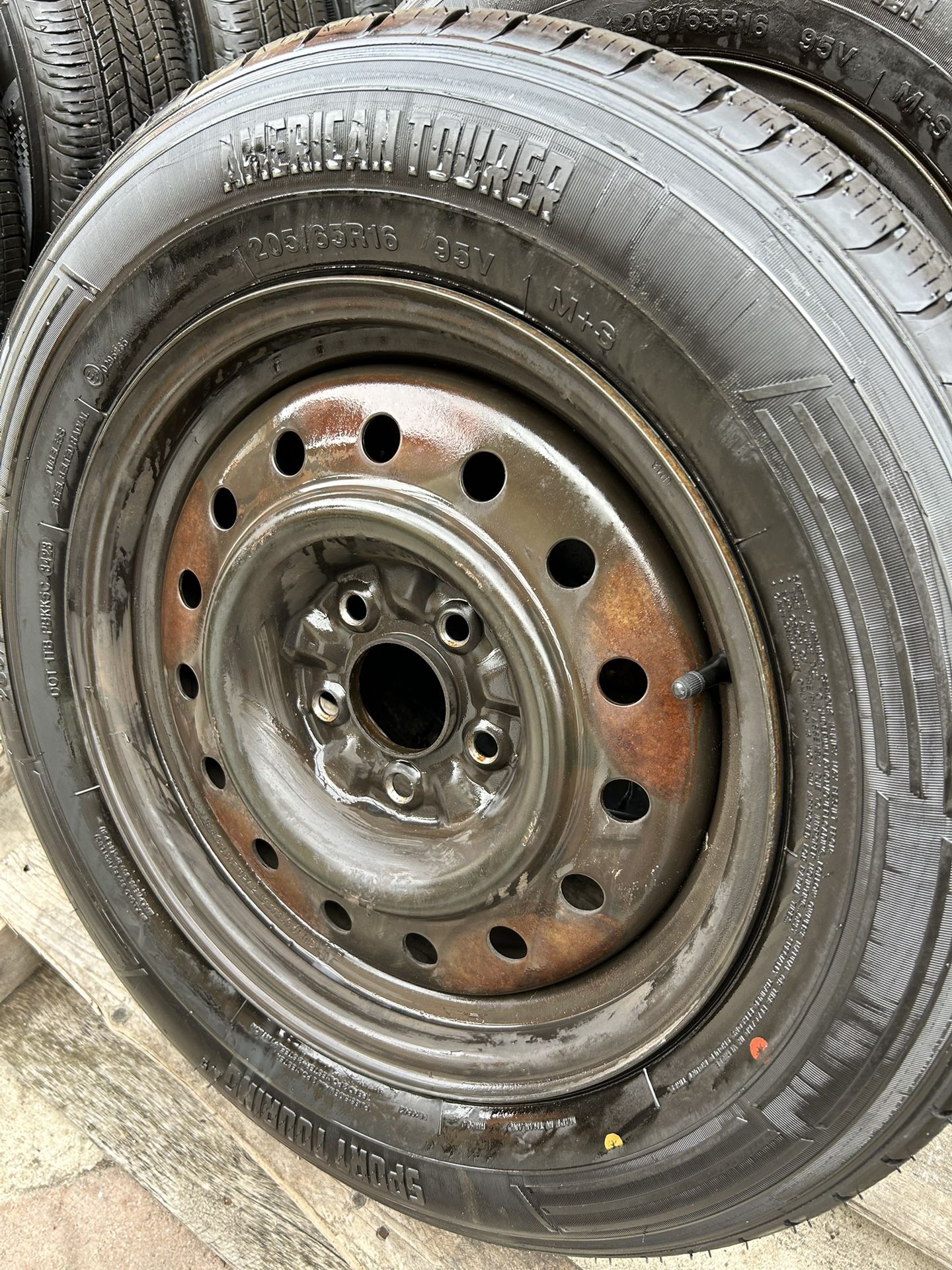 TIRES SIZE: 205 / 65 RIMS-16 5. LUGS. 5. BIRLOS BOLT PATTERNS: 5 X 114.3 ( 5 X 4.5 ) TWO TIRES: 99% GOOD CONDITION TWO TIRES: 85% GOOD CONDITION THE TIRES USED AND ARE BEING SOLD AS IS STEEL WHEELS GOOD CONDITION CASH ONLY