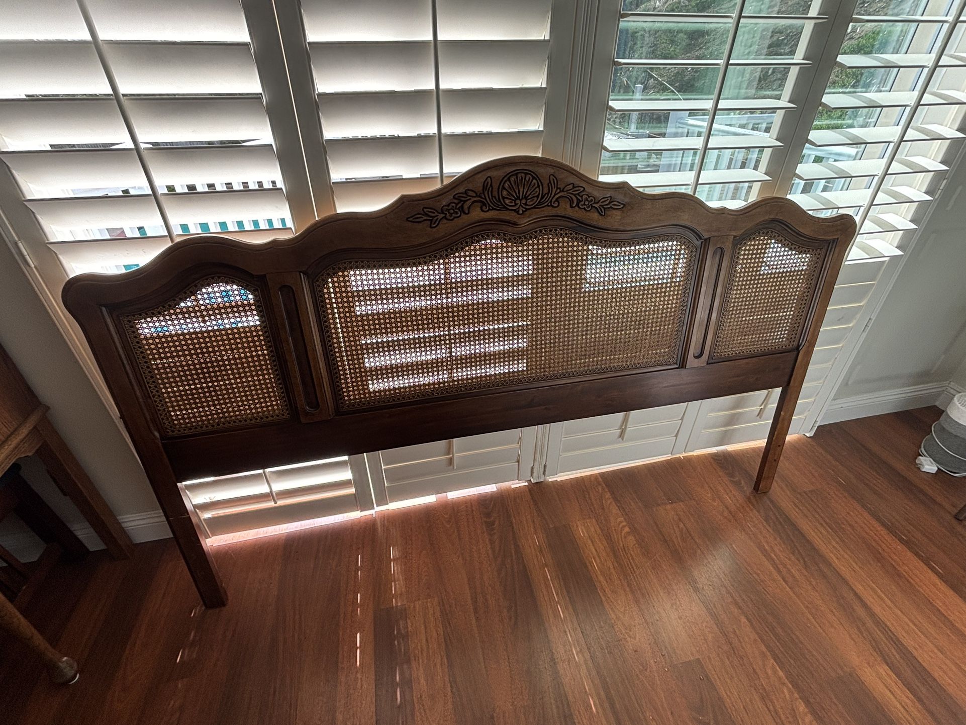 Dixie Drexel Mid Century Cane King Headboard. It retails for much more through vintage retailers, but I’d rather not ship it if I don’t have to so I’m offering it for a steal. It’s in great condition. The cane is perfect. Only imperfections are marks on the legs where the bed frame meets the headboard. It’s beautiful and I don’t want to part with it, but I’m downsizing.