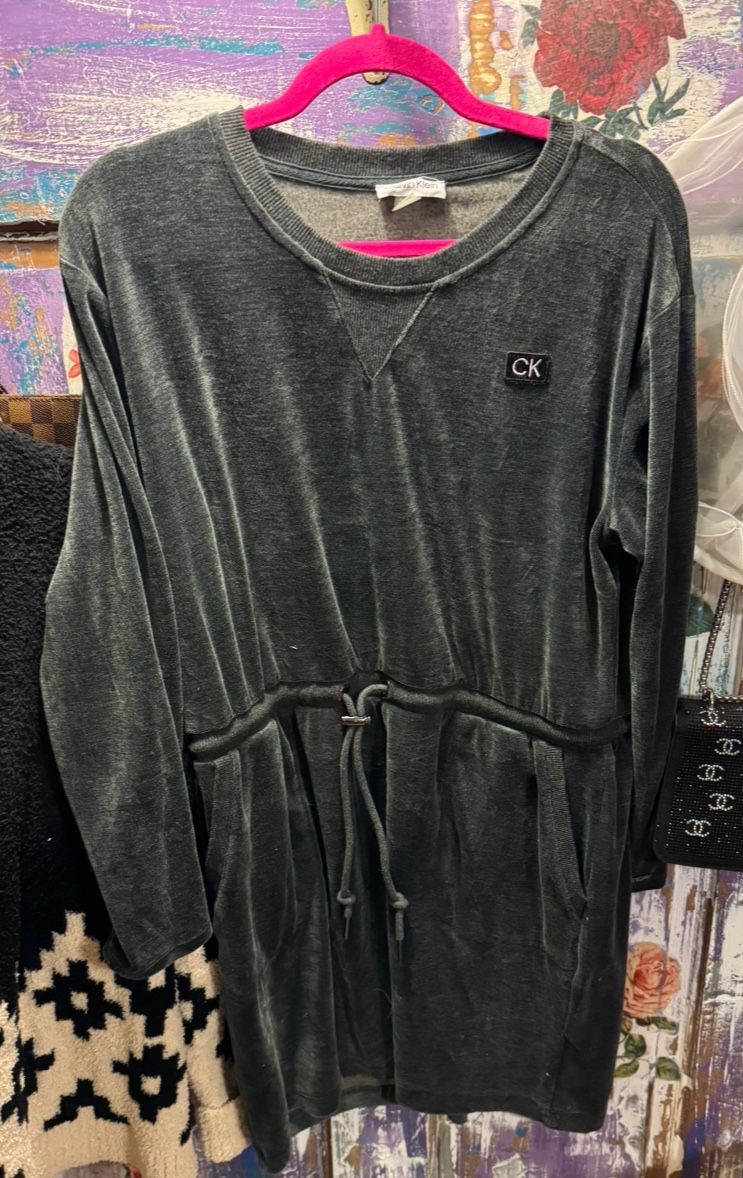 CALVIN KLEIN GRAY BUTTERY VELOUR DRESS SIZE LARGE LIKE NEW SMOKE FREE