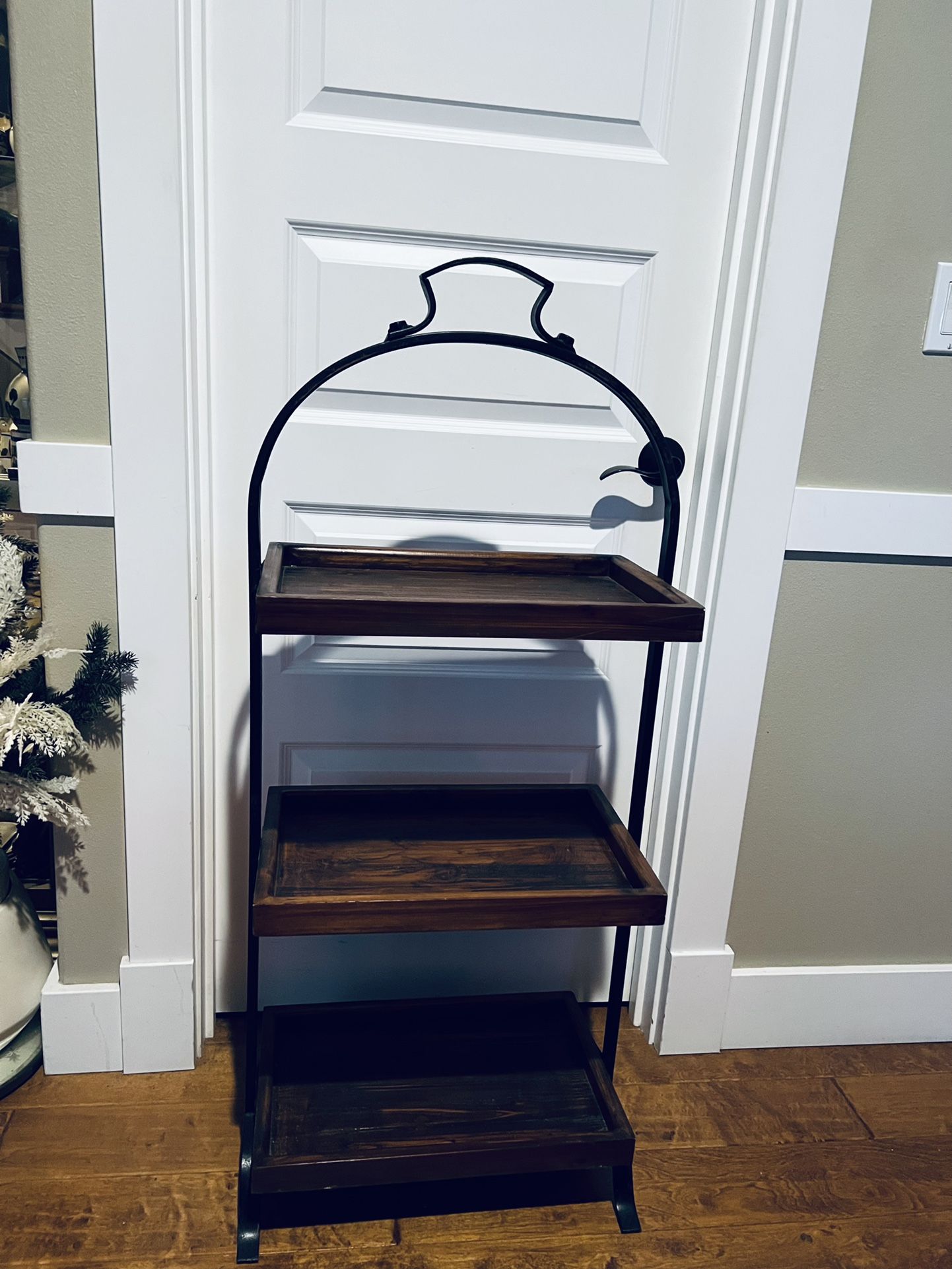 Super cool, metal and wood three tier shelf This is a great piece for any room!