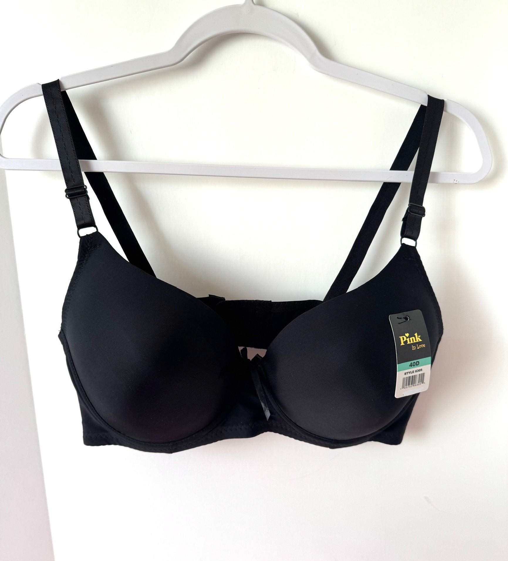 Women’s Full Coverage Bra, Black. Size 40D. Padded, Underwire, Adjustable Straps. Polyamide/Spandex. Brand new with tags. (1306) #bra #intimates #paddedbra #underwirebra #pinkinlovebra