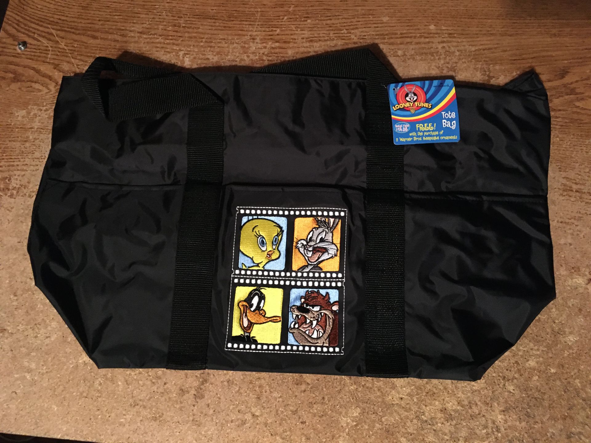 Vintage Looney tunes black zippered tote bag Hallmark bugs daffy Taz Tweety