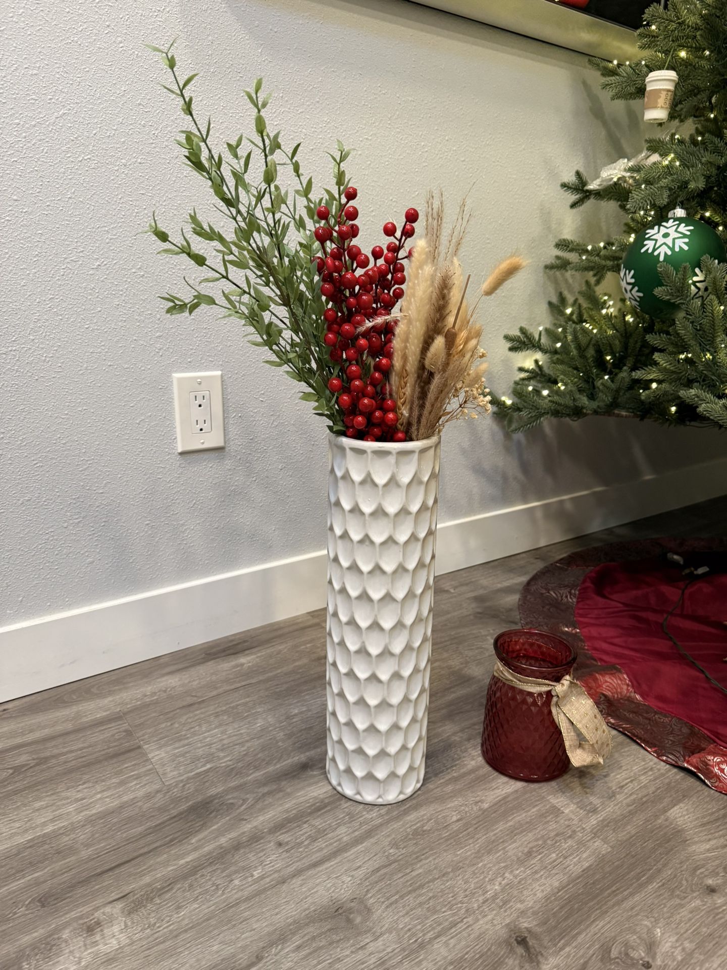 Elegant 18” White Decorative Vase + Bonus Red Glass Vase