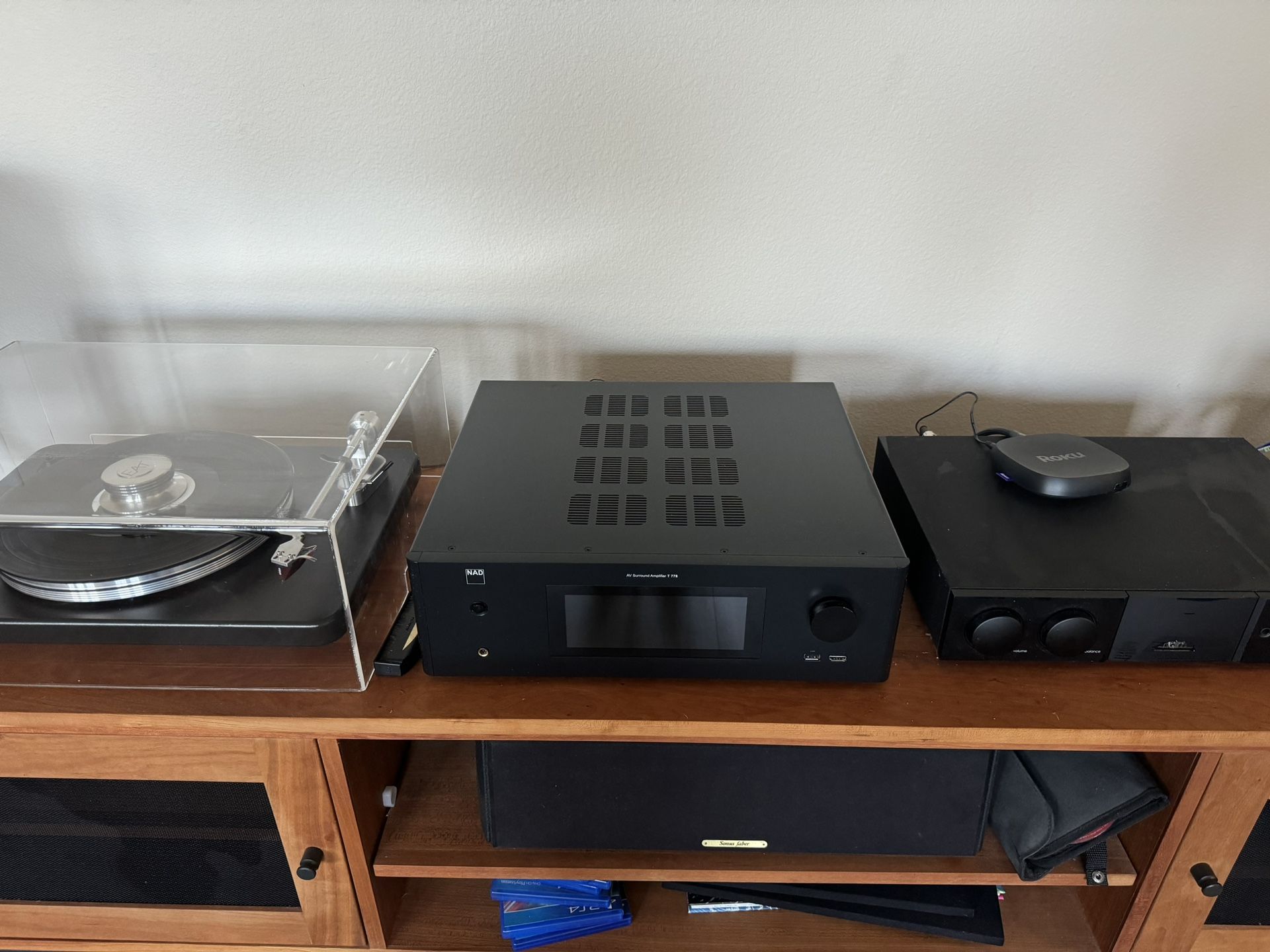Excellent shape with no issues. NAD T778. Purchased in 2021, new and original owner. Moving to two-channel. Will ship in original box with remote, manual, and other accessories.