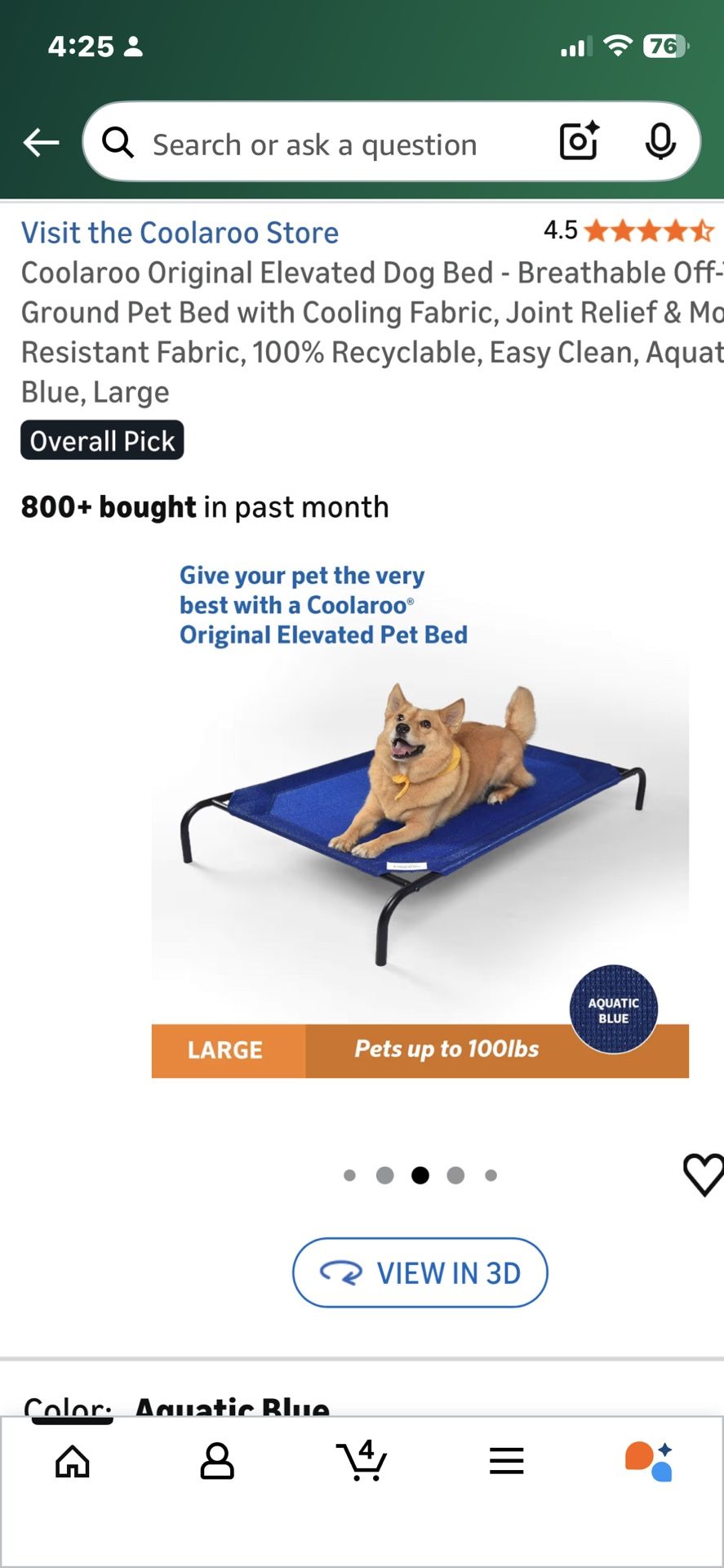 BREATHABLE COOLING FABRIC: Promotes continous 360-degree airflow to help prevent hot spots and keep pets coool and comfortable. SUPPORTS JOINT HEALTH: Off-the-ground design supports mobility and eases pressure on joints, perfect for all breeds and life stages. INDOOR OR OUTDOOR USE: Lightweight, portable design makes it ideal for use on patios, decks, or indoors ECO-FRIENDLY & PET SAFE: Made from 100% recyclable fabric which is free from harmful toxins, lead, and phthalates. MOISTURE-RESISTANT & EASY CLEAN: HDPE fabric resists damage from damp conditions and moisture build-up. Hose off or wipe clean for a quick refresh. Never used. Dimensions approx 4ft X 3ft. 6in height. Blue mesh.