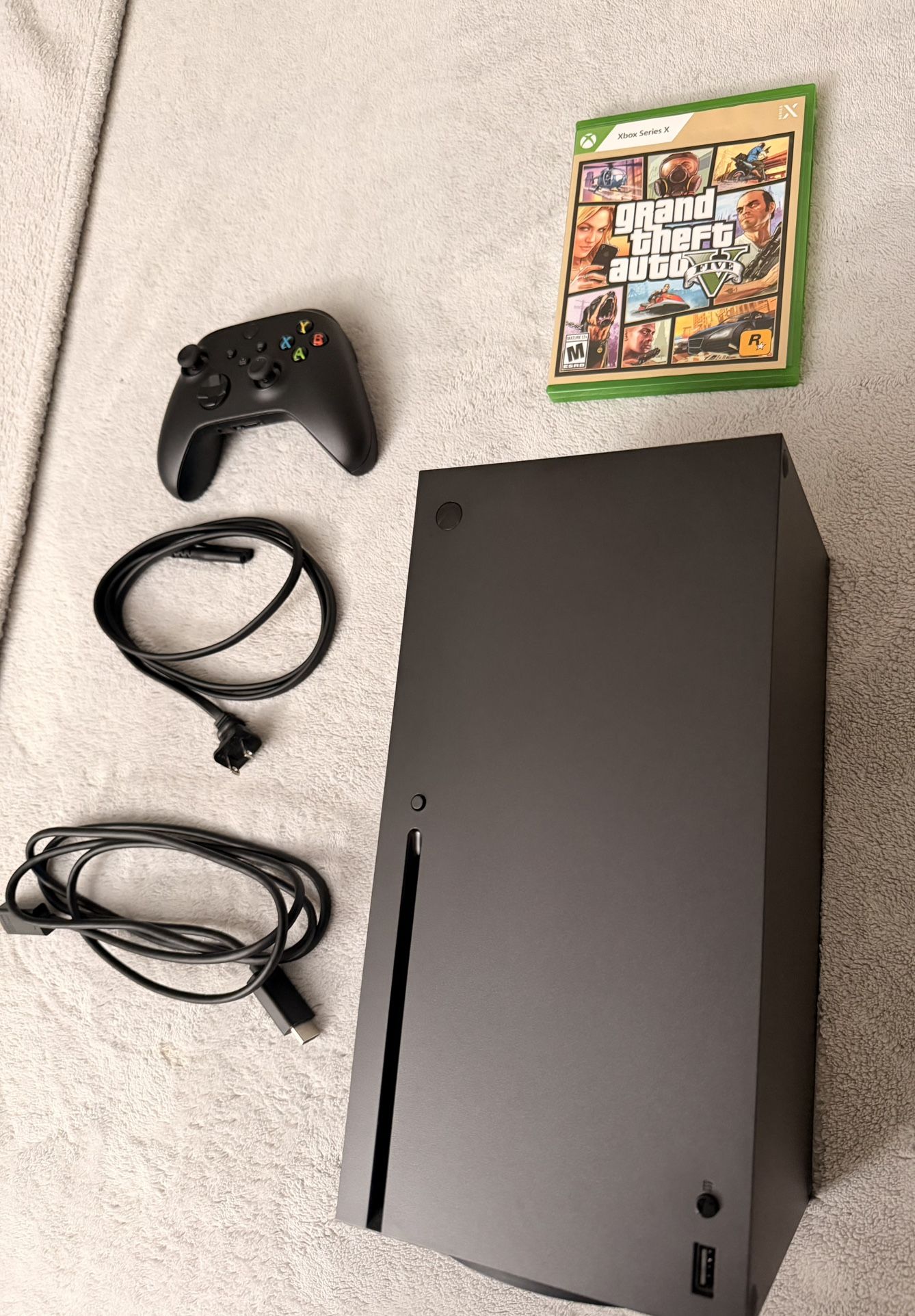 Comes with Series X controller, all original cables, and GTA 5. Barely used like new , Batteries included if needed. FIRM