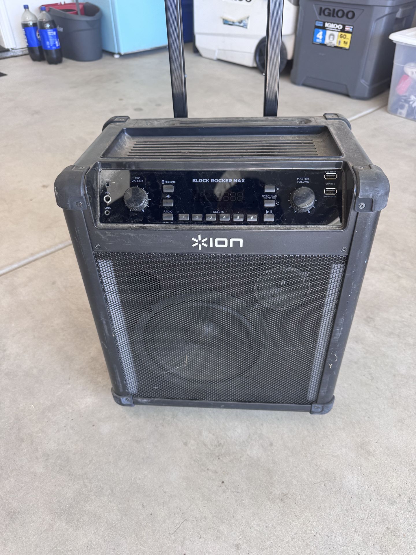 Turns on, but no sound while plugged in and wont hold a charge. Can be used for parts or need some work. $15