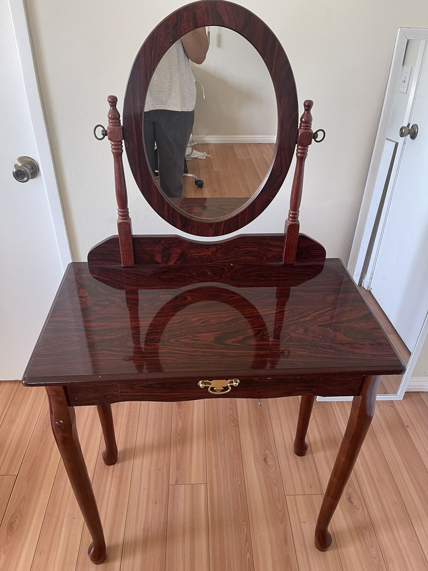 Hola se vende tocador . Pero también estoy ofreciendo trabajo por favor manda un inbox si estás interesada, el trabajo es en Orange County , pero yo me ubico en Fountain Valley CA , cerca de Santa Ana .