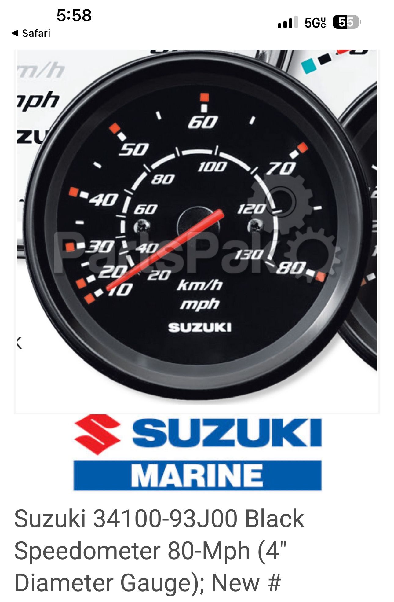 Suzuki 34100-93J00 Black Speedometer 80-Mph (4" Diameter Gauge)