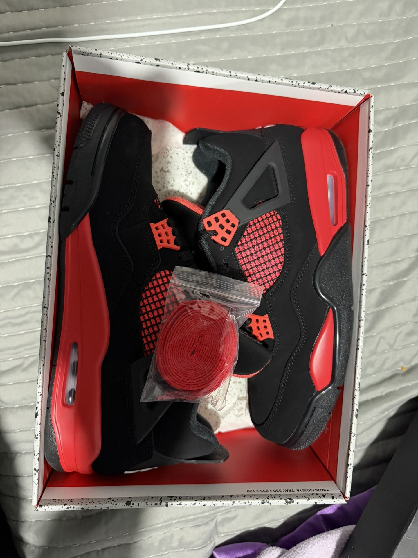 Jordan Retro 4 β Brand New (Deadstock) Brand new Jordan Retro 4s. Shoes are in perfect condition and come with the original box and extra red laces. No flaws, no creases. π₯ Clean colorway π¦ OG box included Taking offers, serious buyers only. Message me if you want more pictures or have questions.