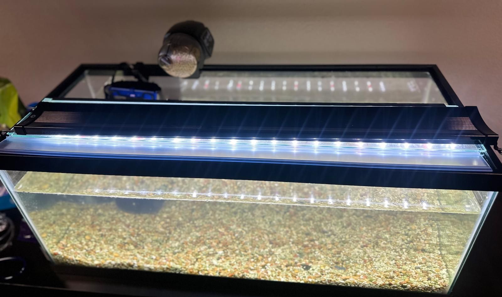 25 gallons aquarium with six gold fishes, food, chemicals and a filter..