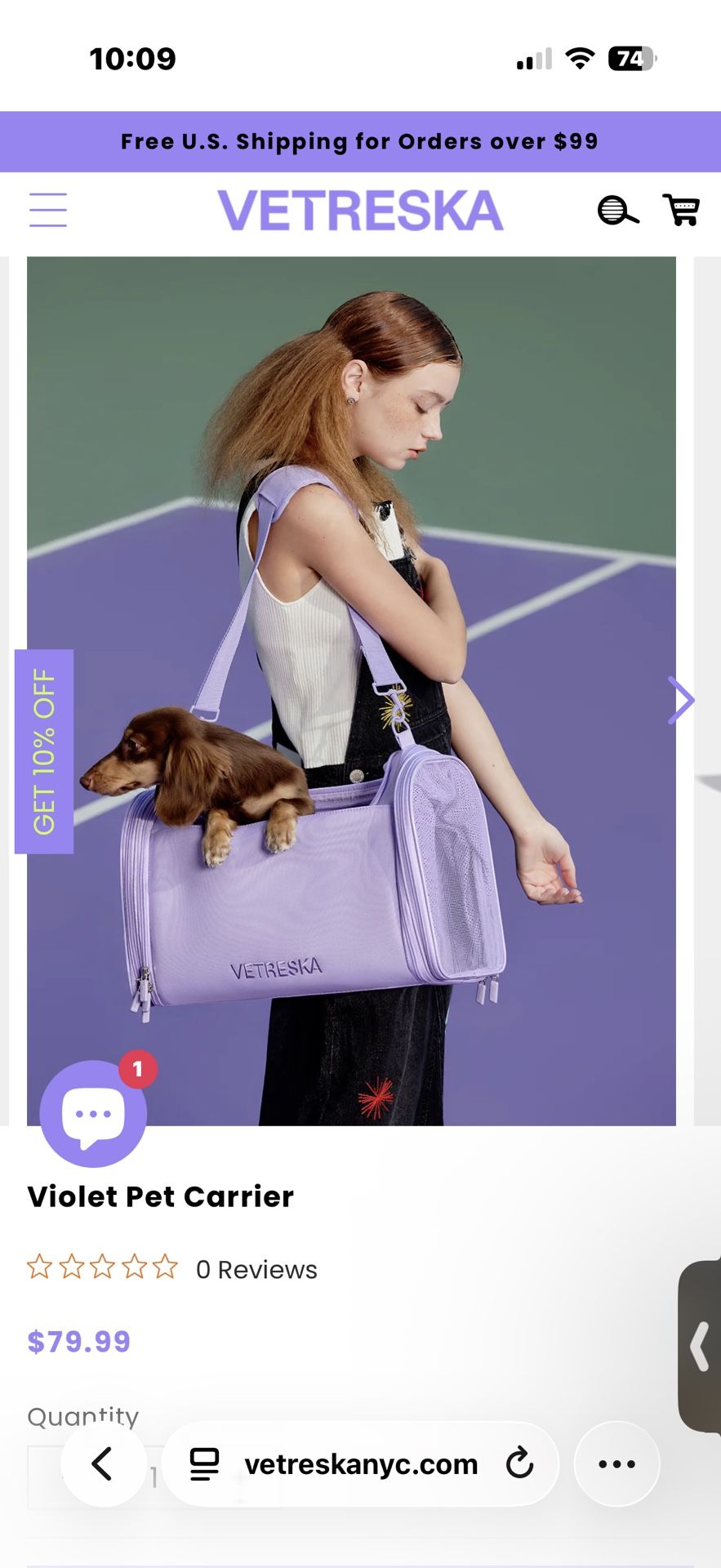New never Opened Retaip $79.99 plus shipping VETRESKA Violet Pet Carrier, the epitome of pet travel chic! This stylish accessory not only elevates your pet's travel game but also makes a fashion statement that turns heads. With its sleek VETRESKA Violet color palette and robust frame support, it's designed for both the runway and the real world. The zipper lock feature adds a touch of security, ensuring your pet stays as fabulous as ever inside. Embracing the latest trends, it features dual-sided and top mesh panels, keeping your fur baby comfy and breezy without compromising style. Inside, an included cushion pampers your pet while the breathable mesh fabric at the bottom keeps things fresh.