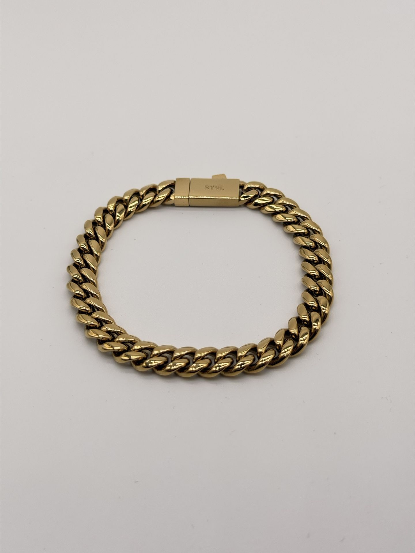 8mm Gold Plated Cuban Link Bracelet – Stainless Steel – New