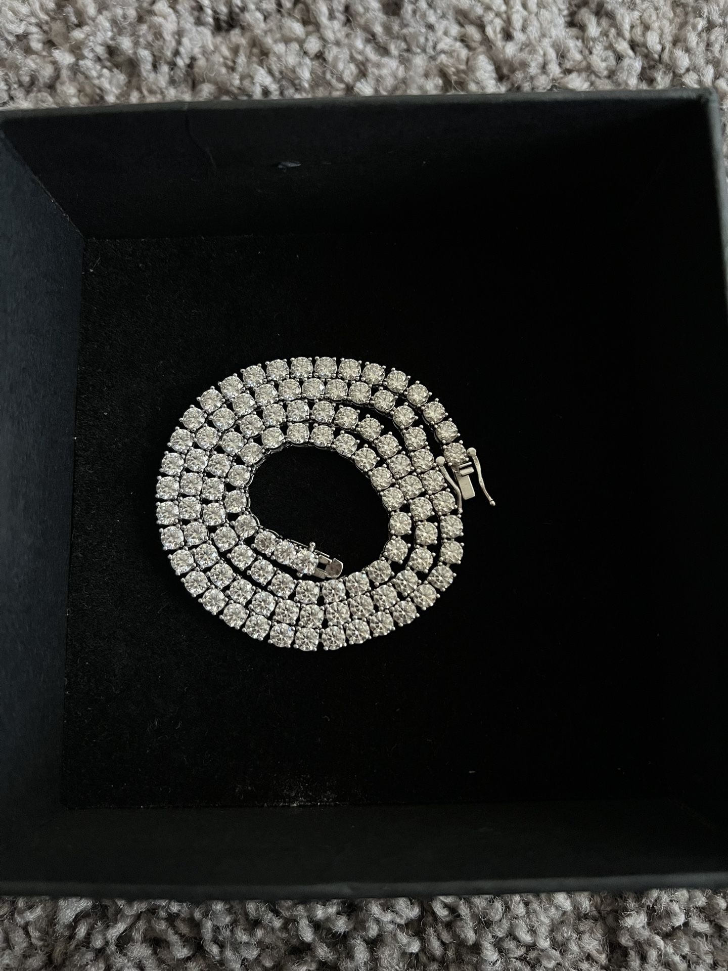 Moissanite Lab Diamonds 4MM 20 inches length Does not tarnish or change color, passes all diamond testers as DIAMOND. VVS 2 clarity stones, 925 silver with stamps. Certificates and box included.