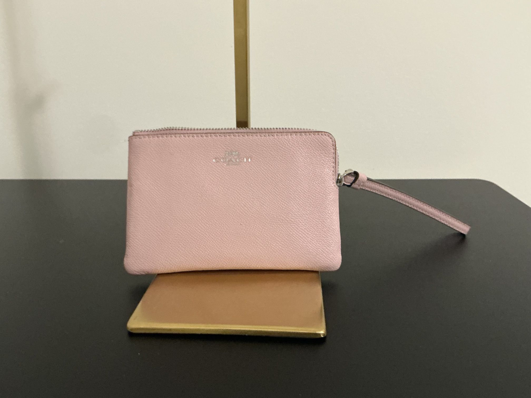 This adorable Coach pink wristlet is the perfect grab‑and‑go accessory for everyday errands or nights out. Crafted from durable crossgrain leather, it offers both style and practicality in a compact design. Features: • Made from high‑quality crossgrain leather • Two interior credit card slots for easy organization • Secure zip‑top closure with fabric lining • Attached wrist strap for convenient hands‑free carry • Classic Coach craftsmanship and timeless style This wristlet comes from a pet‑free and smoke‑free home, and has been gently pre‑loved with plenty of life left. Add this great choice for a chic, functional look. What a great value.
