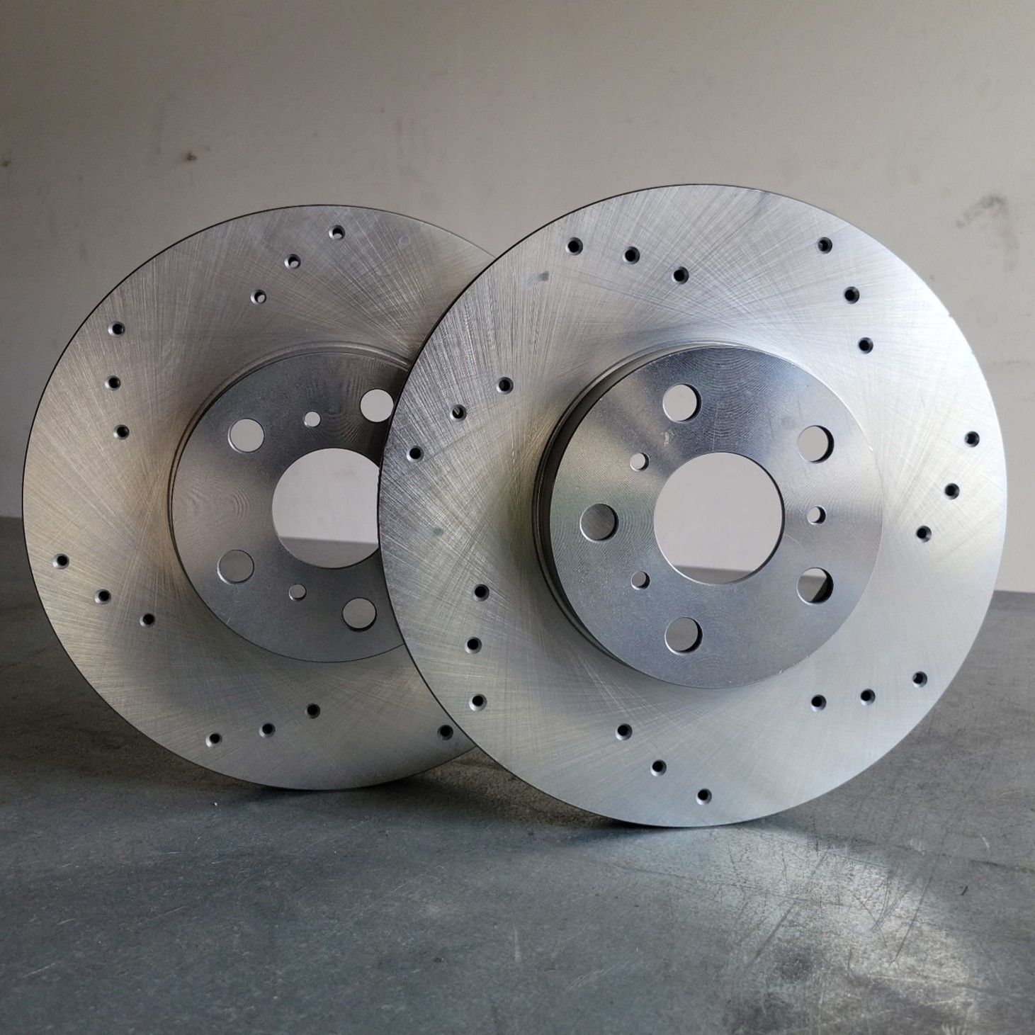 1990 1991 LEXUS ES250 Front Brake Rotors Drilled Silver Zinc Coated Pair