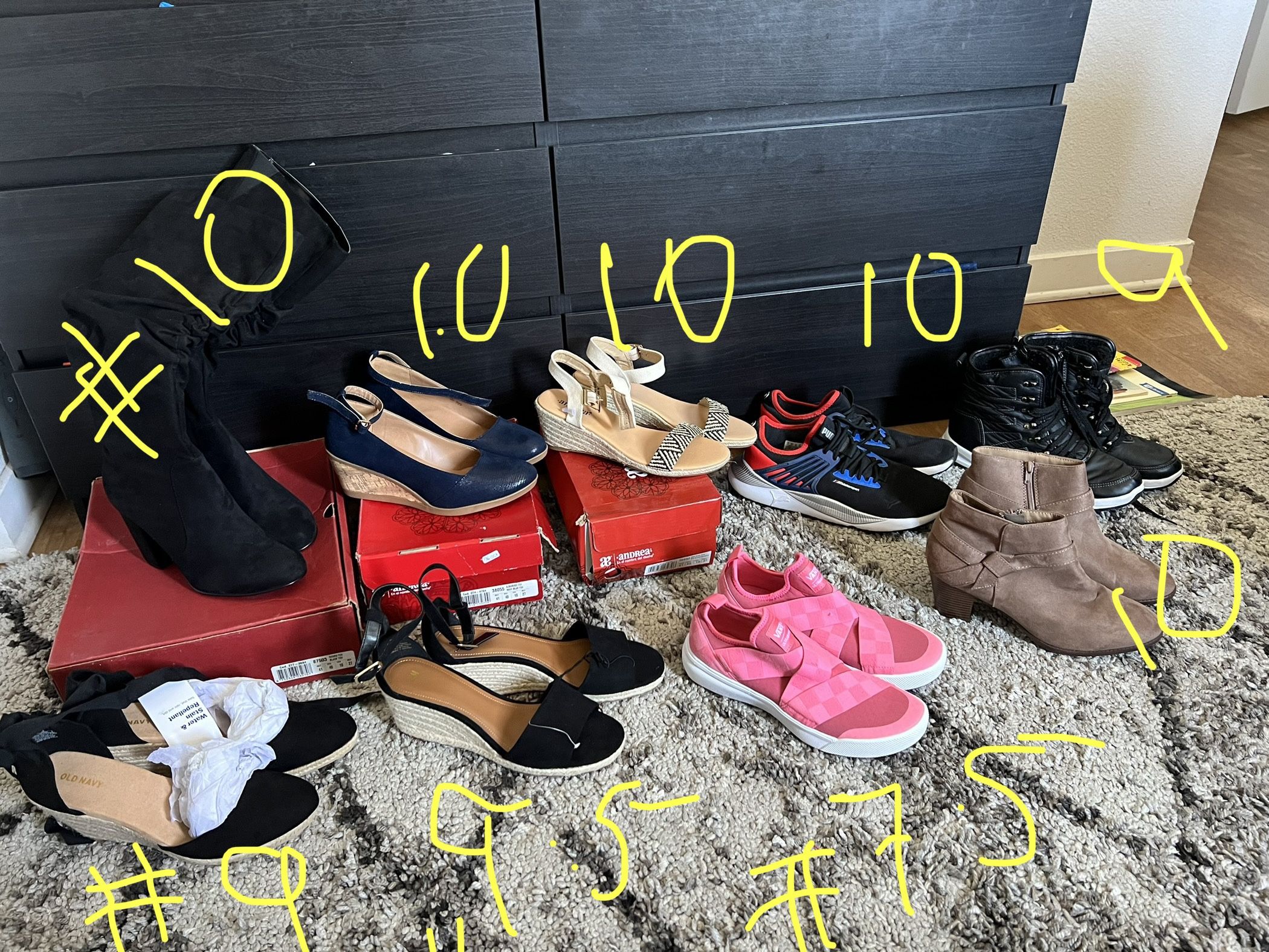 Puma sneakers, black ankle boots and brown ankle boots are used. The screen says the size of each shoe, the rest are new Firm price all for $65