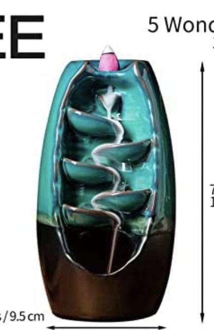 Ceramic Incense Burner with Cones, Waterfall Backflow Incense Holder, Aromatherapy Ornament, Zen Decor, Home Decor, Room Decor (Cyan)