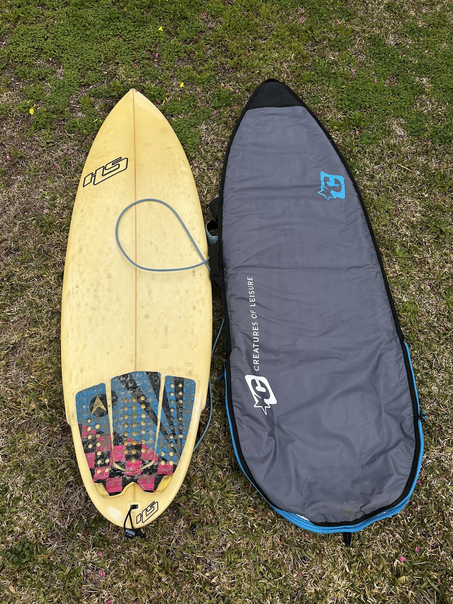 Dims in post Some pressure dings and normal wear Comes with bag, leash, and two carver fcs fins for quad setup Hit me up if you’re interested!
