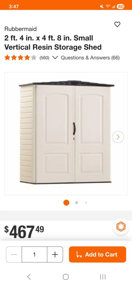 NEW STORAGE SHED Vertical Rubbermaid 4'7" WIDE 2'4" DEEP 6'5"TALL Cost $465 Will take $350 BRAND NEW UNUSED