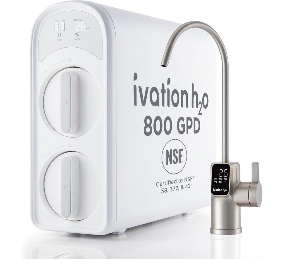 REVERSE OSMOSIS WATER FILTRATION SYSTEM | Compact Tankless Water Purifier Provides Your Family with Clean Drinking Water Straight from the Tap—No Exterior Filtration System, Faucet Cartridges, Purification Tablets, Pitchers or Countertop Appliances Required! Set Includes Discreet Under Sink Purifier with LED Display, Smart LED Faucet, Power Adapter, Plumbing & Hardware Kit [Professional Installation Recommended] 800 GAL PER DAY AT 3:1 PURE-DRAIN RATIO | No More Waiting to Fill Your Glass at the Tap! Our Ultra-Efficient Advanced Water Filter System Ensures Consistent On-Demand Purification, Fast, Stable Flow Rate & Minimal Wastewater Produced Per Gallon of Pure Water Created | High Capacity 800 GPD Unit Easily Meets the Average Daily Household Water Usage for Singles, Couples & Small-to-Medium Sized Families POWERFUL 8-STAGE PURIFICATION PROCESS | Instantly Improve the Taste & Odor of Your City Water! Under Sink Water Filter Uses a Reverse Osmosis Semi-Permeable Membrane to Help Separate Water Molecules from Chemical Contaminants, Heavy Metals, Excess Minerals & Other Harmful Substances Including Rust, Sediment, Lead, Chromium, Copper, Iron, Sodium, Chloride, Fluoride, PFAs, Radium, Etc. ATTRACTIVE FAUCET WITH SMART LED DISPLAY | Fill Up an 8-Ounce Cup with Clean, Pure, Great-Tasting Water in 6 Seconds Flat! Home Water Purification Kit Includes a Stunning Single Handle LED Faucet in Brushed Nickel with Gorgeous Arched Neck 360° Spout & Smart Display | Screen Illuminates & Synchronizes with Purifier Unit to Indicate Current TDS Level (Water Quality), Filter Lifespan & Malfunction Code DUAL FILTER SAVES MONEY ON REPLACEMENTS | While Similar Home Water Purification Systems Require 3 Filters to Operate, Our Condensed Unit Needs Just 2 Long-Lasting PPC & RO Filters, Which Cost Only 25 Cents Per Day | Save Money on Filter Replacements & Reclaim Up to 70% of Your Under Sink Space Compared to Bulky Competitors | Ideal for House or Apartment Kitchen, Bathroom, RV Sink & More