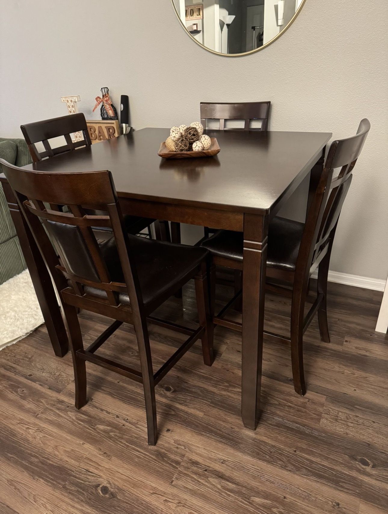 4 chairs, espresso color, also have a brand new packaged chair backing in case one needs to be replaced in the future.