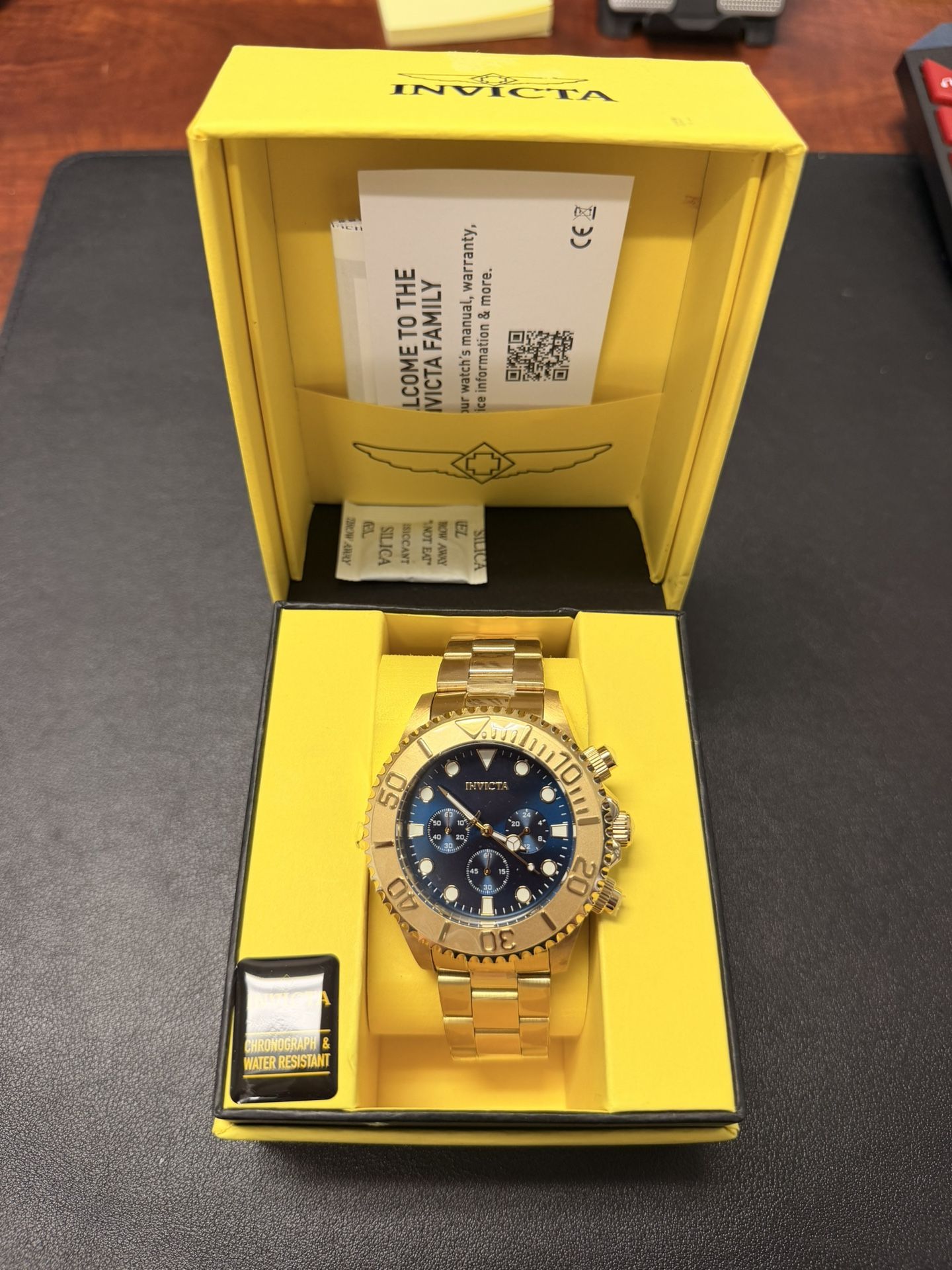 Invicta Men's Pro Diver Quartz 47mm Gold, Blue Dial Brand New In Box