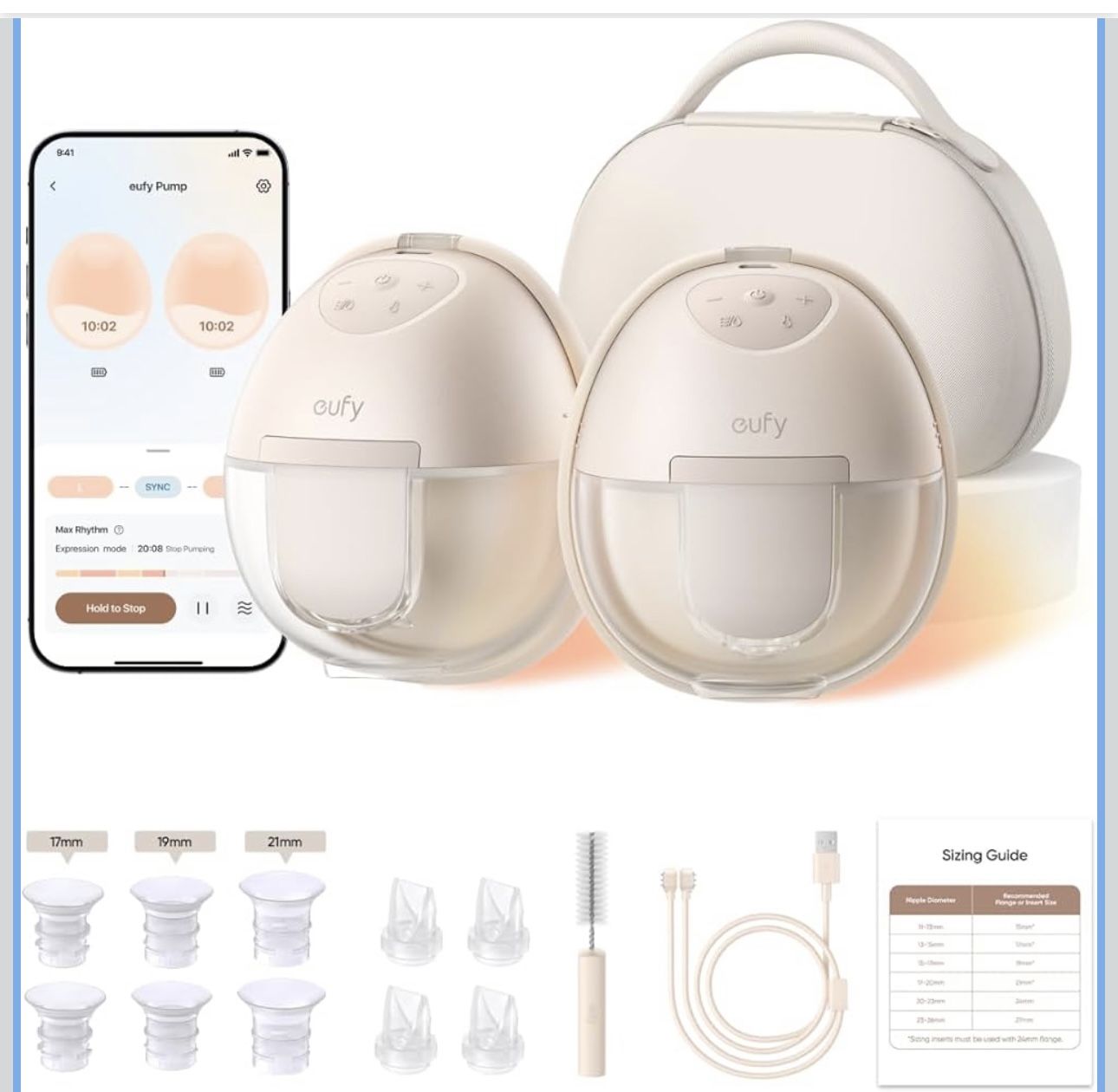 eufy Security Extractor de leche portátil con calefacción S1 Pro, manos libres delgado con tecnología HeatFlow líder en la industria, funda de carga inalámbrica, OptiRhythm controlado por aplicación