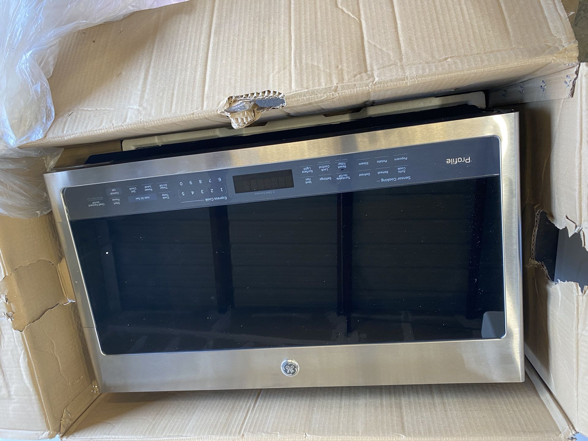 Brand new open box GE Profile™ Series 2.1 Cu. Ft. Over-the-Range Sensor Microwave Oven Stainless Steel retails at $650 Can Deliver Dimensions:17 5/16 H x 29 15/16 W x 16 5/32 D