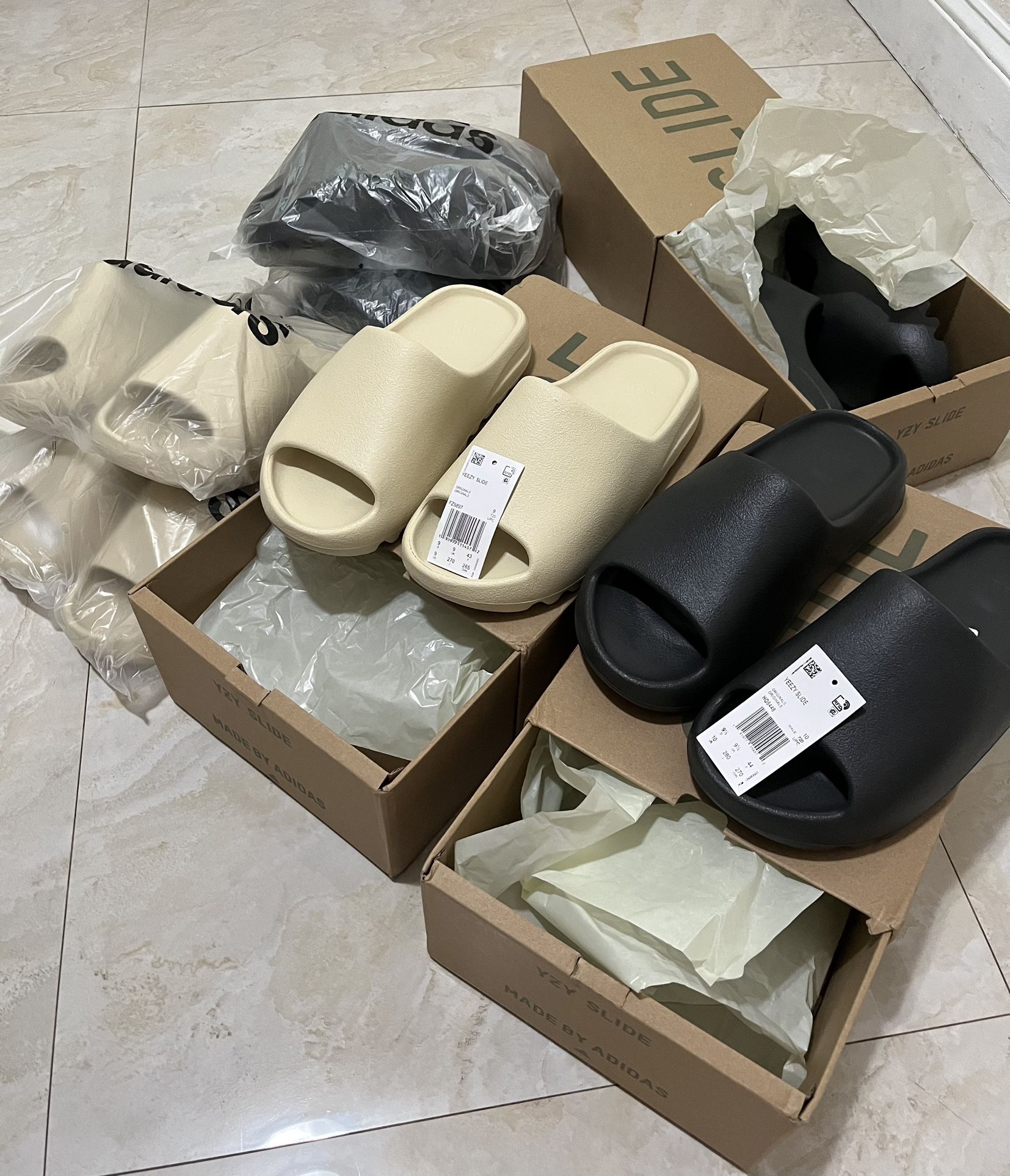 Yeezy-style slide sandals – brand new • Sizes available: 9 & 10 • Colors available: Onyx (Black) & Bone • Condition: Brand new, never worn • Comfortable lightweight foam 📦 Inventory & pricing: • $80 with box • 1 pair: Size 10 Bone (includes socks + XStock verification) • 5 pairs with box (no socks, no XStock tag): • Size 9: 2 Bone, 2 Onyx • Size 10: 1 Bone • $60 without box (plastic bag only) • 3 pairs: • Size 9: 1 Onyx, 2 Bone • 📦 $70 shipped (without box only) 📍 Located in South Miami Heights 💬 Message me for availability or bundle deals ℹ️ Inspired version ⸻ ESPAÑOL 🇪🇸 Sandalias tipo Yeezy – nuevas • Tallas disponibles: 9 y 10 • Colores disponibles: Onyx (Negro) y Bone • Condición: Nuevas, nunca usadas • Espuma ligera y cómoda 📦 Inventario y precios: • $80 con caja • 1 par: Talla 10 Bone (incluye medias + verificación XStock) • 5 pares con caja (sin medias, sin etiqueta XStock): • Talla 9: 2 Bone, 2 Onyx • Talla 10: 1 Bone • $60 sin caja (solo bolsa plástica) • 3 pares: • Talla 9: 1 Onyx, 2 Bone • 📦 $70 con envío (solo sin caja) 📍 Ubicado en South Miami Heights 💬 Escríbeme para disponibilidad o combos ℹ️ Versión inspirada