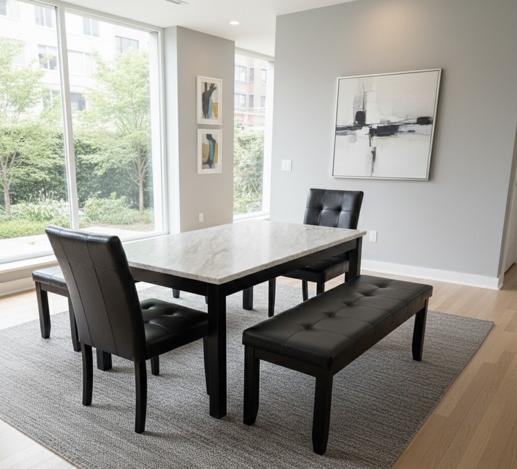 Brand new in factory box Includes: 1 Table 2 nice chairs 2 bench Delivery Available