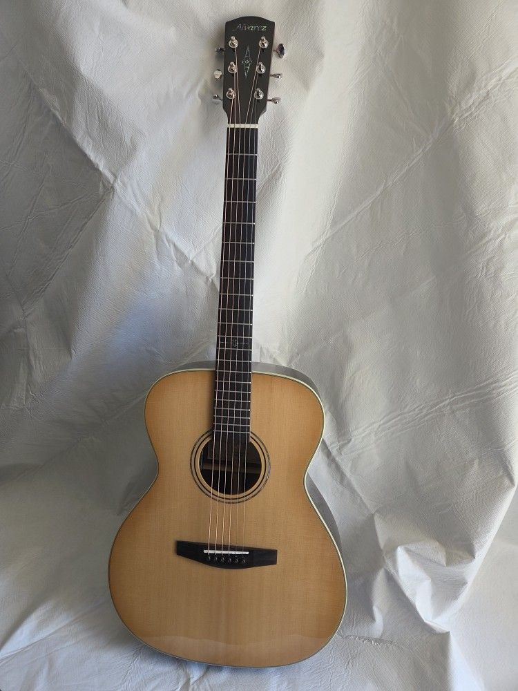 All wood. Sitka Spruce solid top. East Indian Rosewood back and sides. African Mahogany neck with Ebony fingerboard. L.R. Bags hifi pickup system. Gloss finish. Custom Alvarez gig bag included. No dings, scratches or imperfections of any kind. Still under 1 yr manufacturers warranty. Alvarez also offers a limited lifetime warranty. Currently sells for places like Guitar Center for $1599 not including $149 for the gig bag.