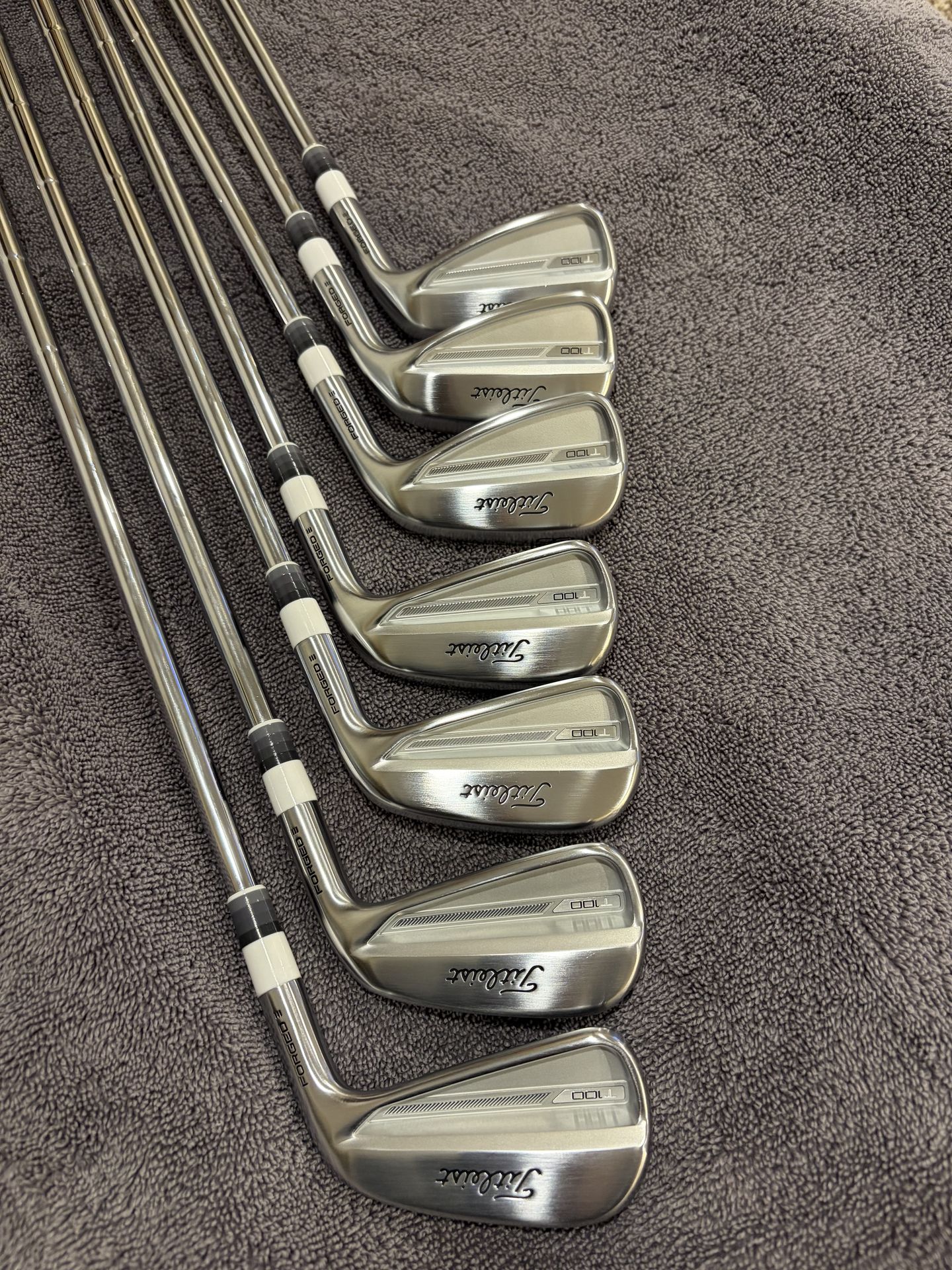 Like new Titleist T100 with AMT white stiff flex shafts 4-P (7clubs) BB&F ferrule and CP2 pro standard grip Never used it on the course. Had 3-4 range sessions. Was saving it for upcoming season but just have too many clubs. Selling to buy more𤣠Open for reasonable offers
