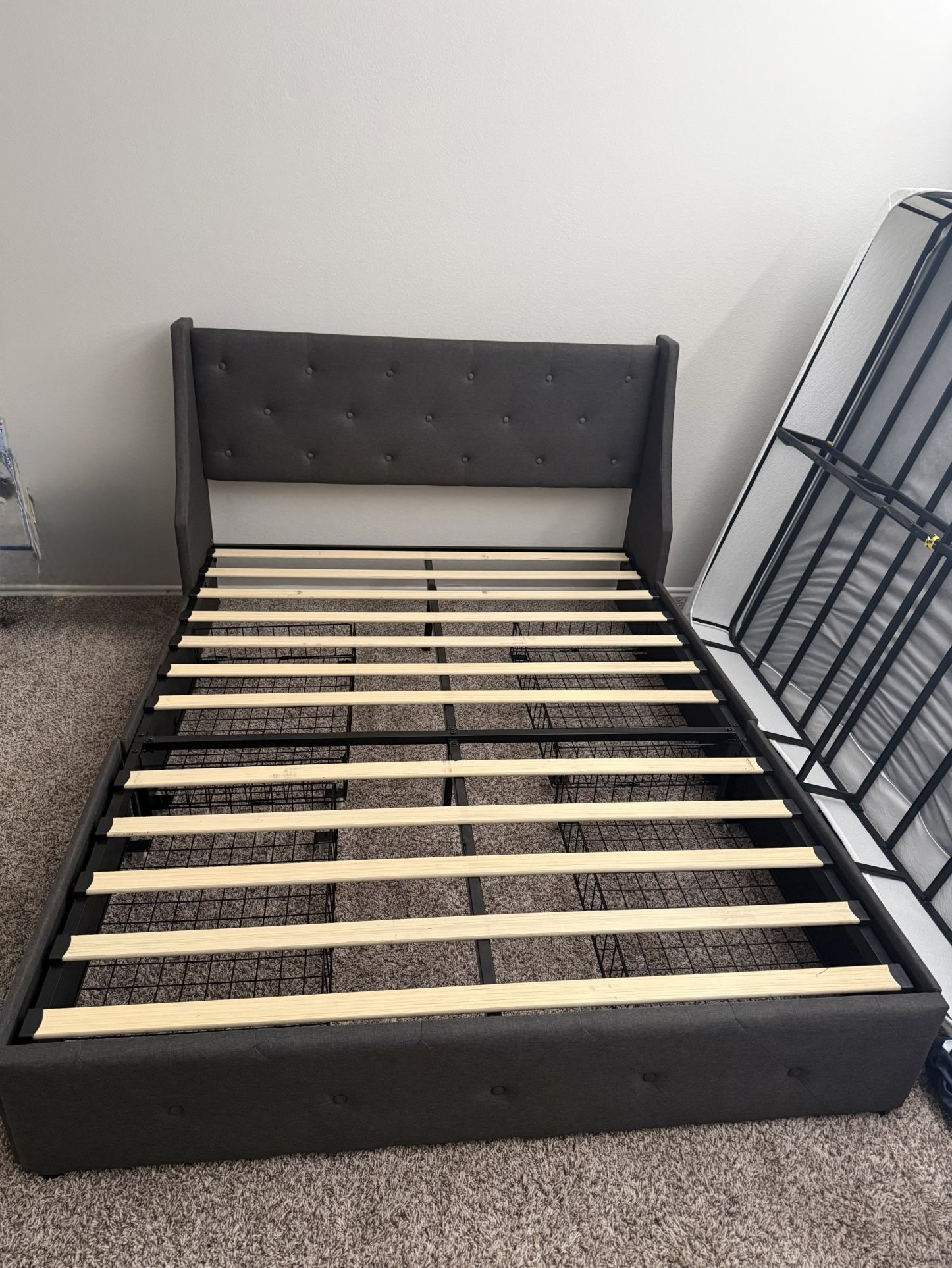 Dark Grey Queen Size Platform With 4 Storage Drawers