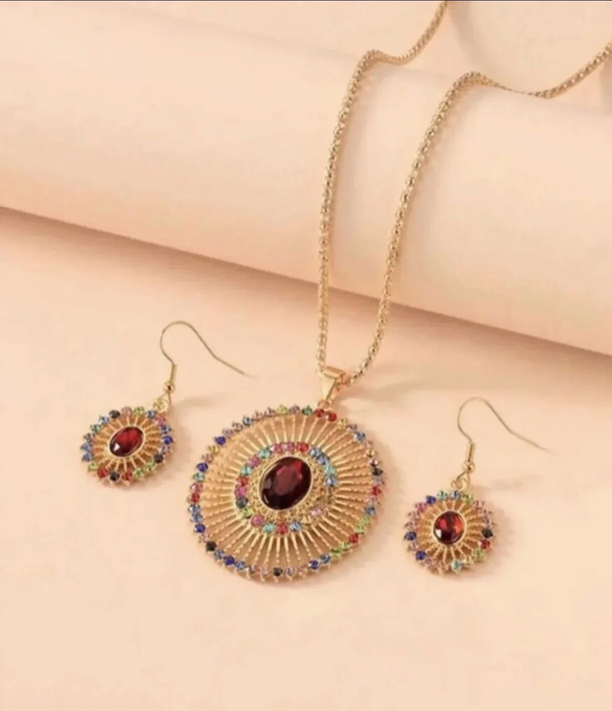 New Multicolor Gold Plated Jewelry Set Necklace and Earrings