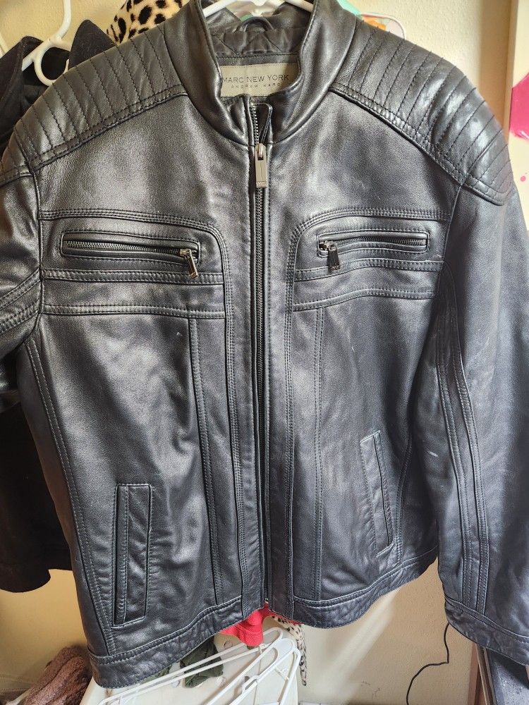 Really nice heavy very warm mens leather jacket bought from Nordstrom for over $600 originally. No tears, no cracking, nothing wrong with it at all literally looks the same as when I bought it. I just Don't wear it anymore but I do love this leather coat it's super comfortable and warm and looks very nice. Would rather see it go to someone that'll wear it than see it just hang in my closet. $250