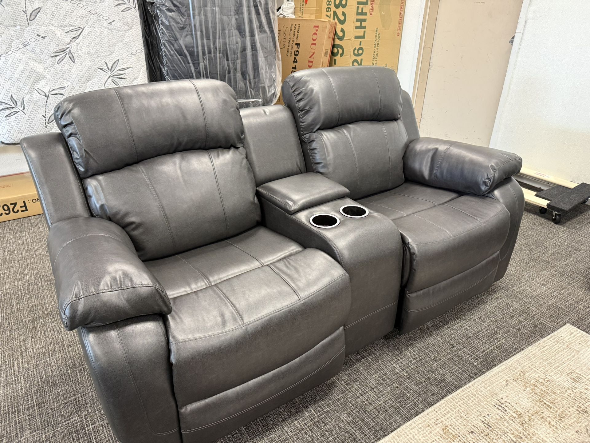 Gray Sofa And Love Seat Recliners + Cup Holder (FREE DELIVERY)