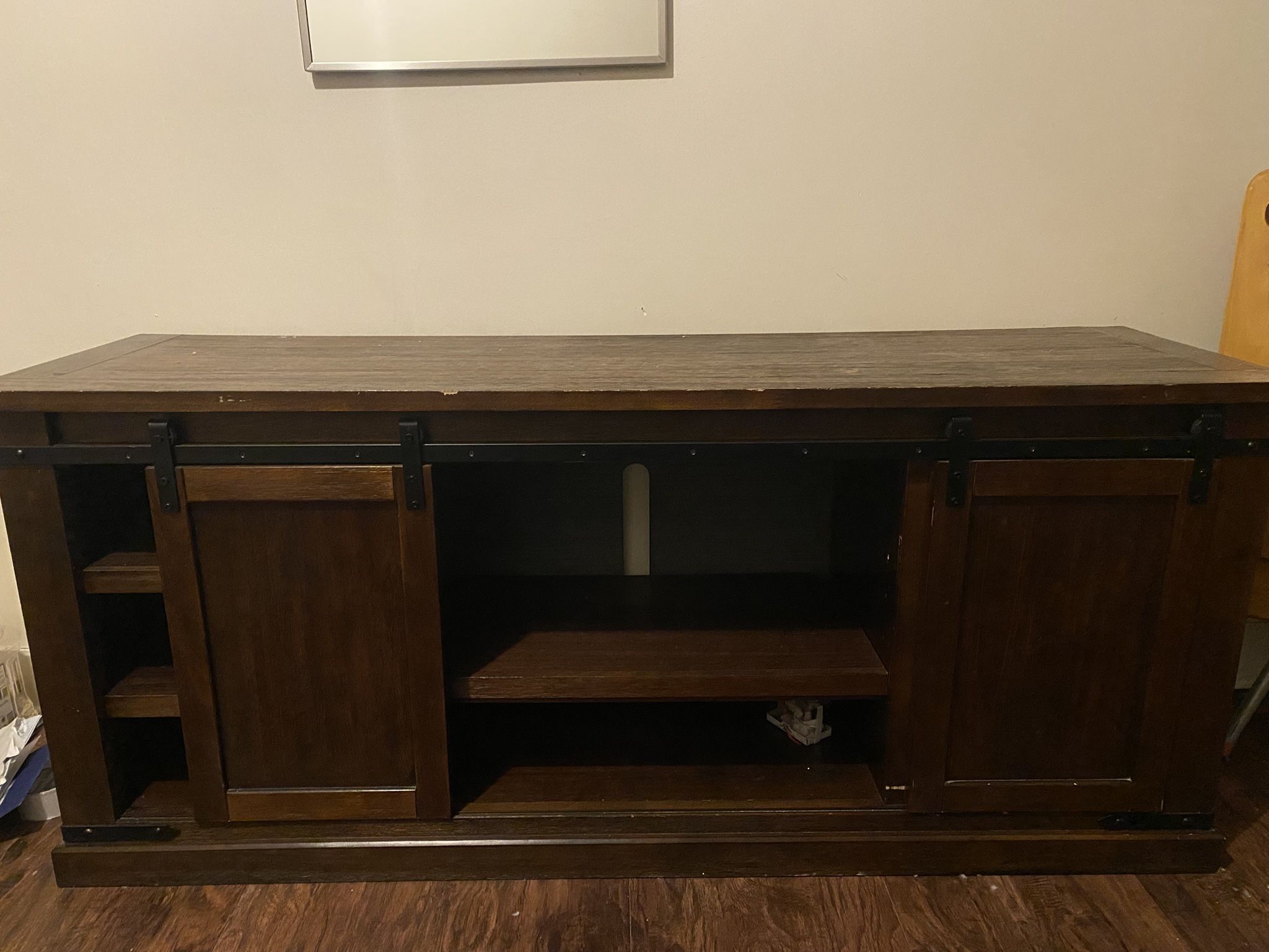 70 in. Brown Wood TV Stand Fits TVs Upto 40 in. with 2-Sliding Barn Door Storage