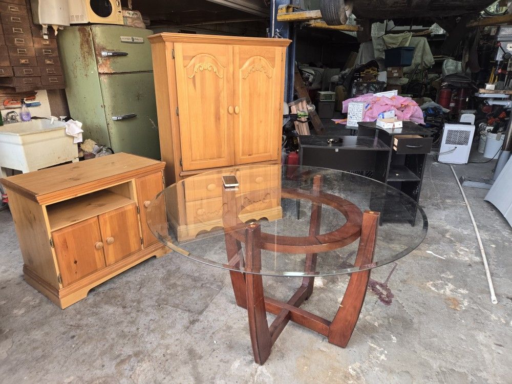Glass dining room table, TV stand, ect