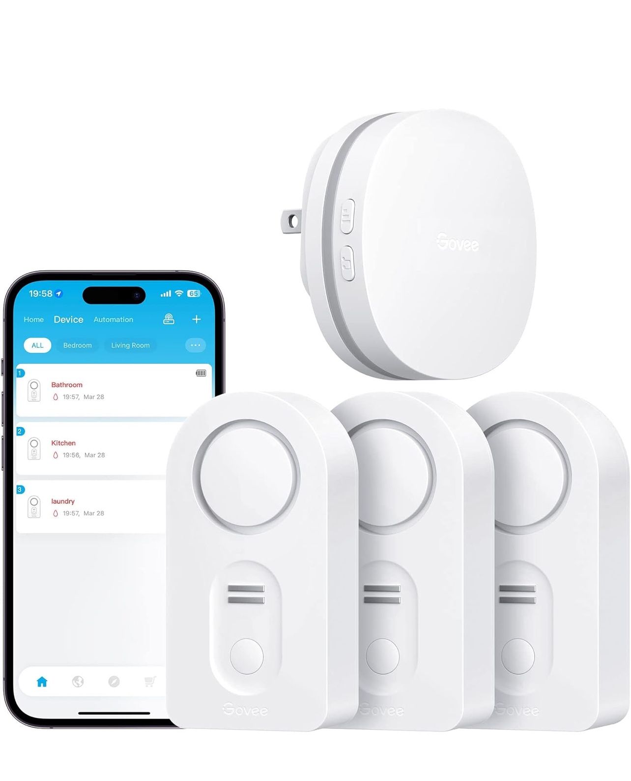 Govee WiFi Water Sensor 3 Pack, Smart Water Leak Detector, 100dB Adjustable Alarm Suit for Home and Basement, Water Leak Alert with Email & APP Push