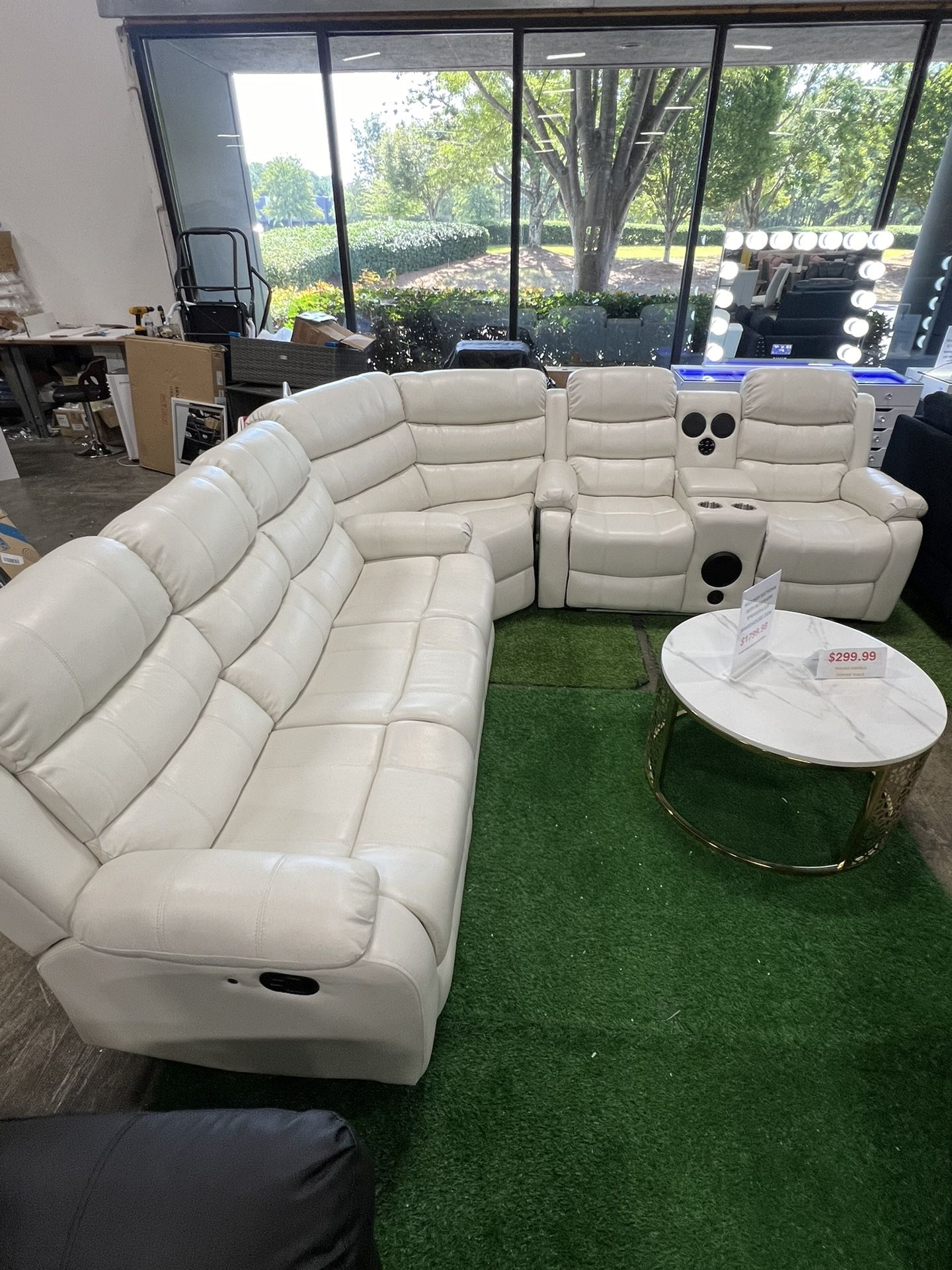 Living Room White Sectional with Bluetooth Speaker and LED Lights