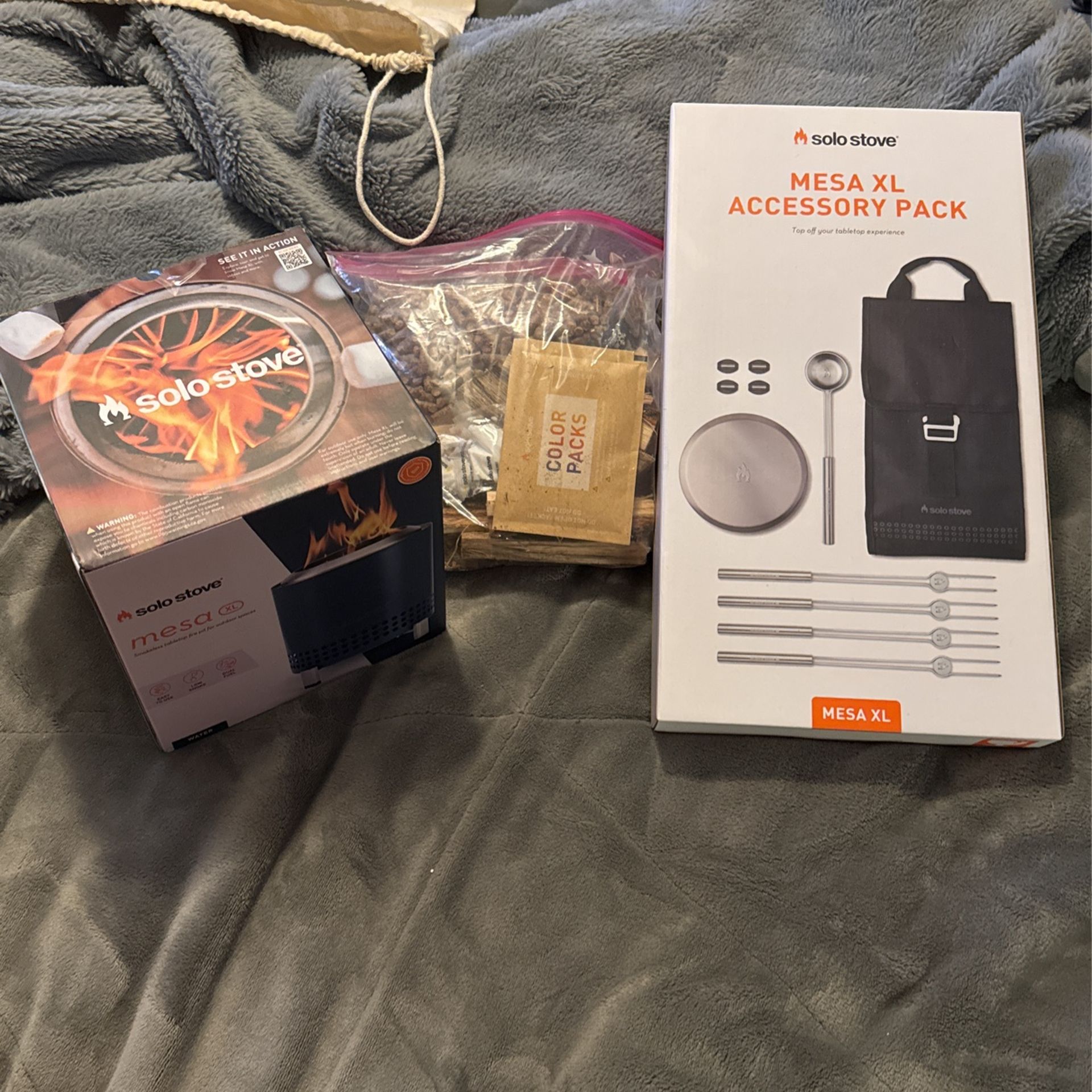 Never opened Solo stove, Mesa, XL and accessory pack. Also comes with other goodies. Need gone ASAP