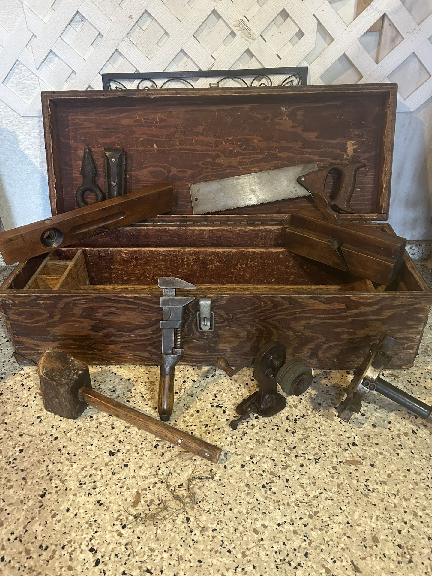 Toolbox with a variety of collectible tools Almost a hundred years old. Must sacrifice.