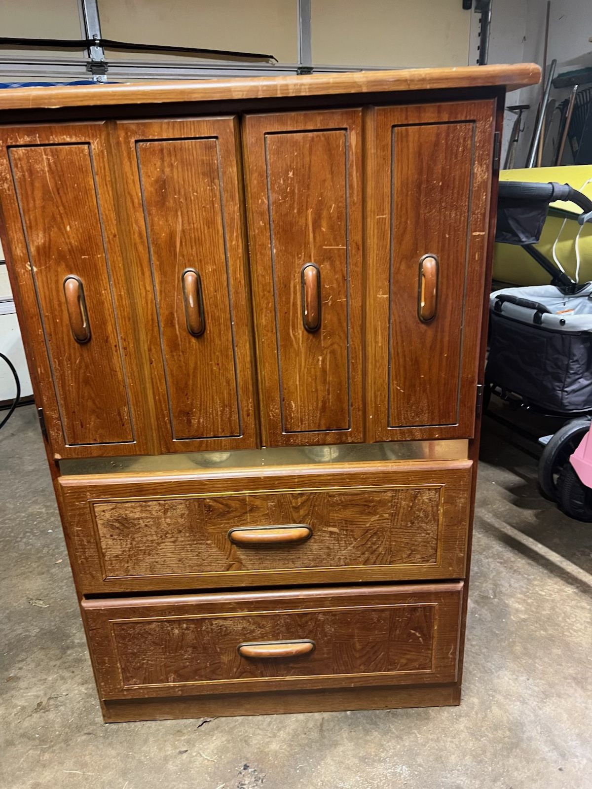 Small wardrobe Brown with gold accent chest 48" tall 32" wide 16"deep