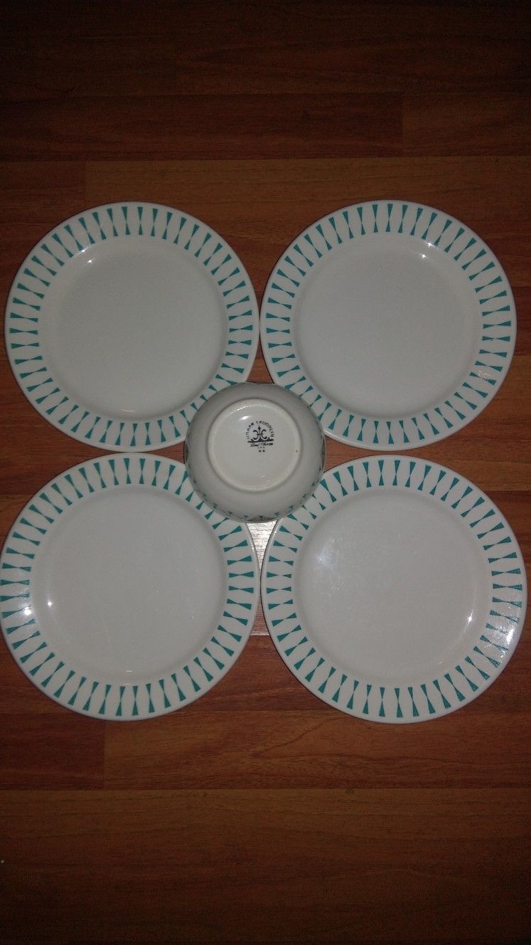 Set of five includes a cereal bowl and 4 plates (9"). Pattern HLC815 discontinued heavy restaurant quality. #2188
