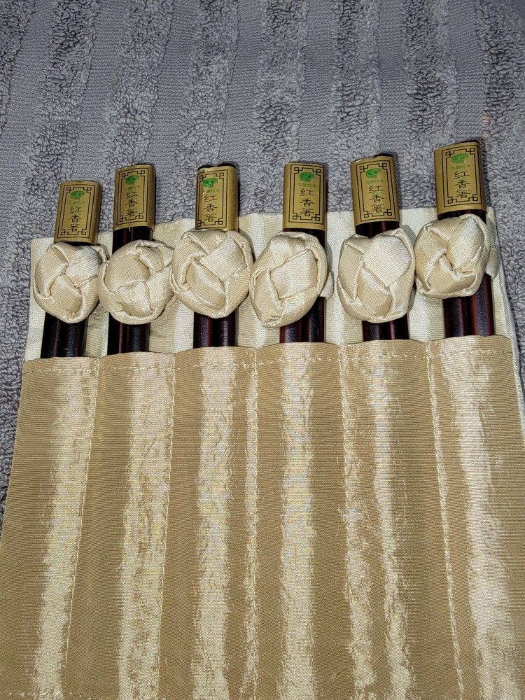 Vintage Wooden Chopsticks With Knotted Fabic Holders